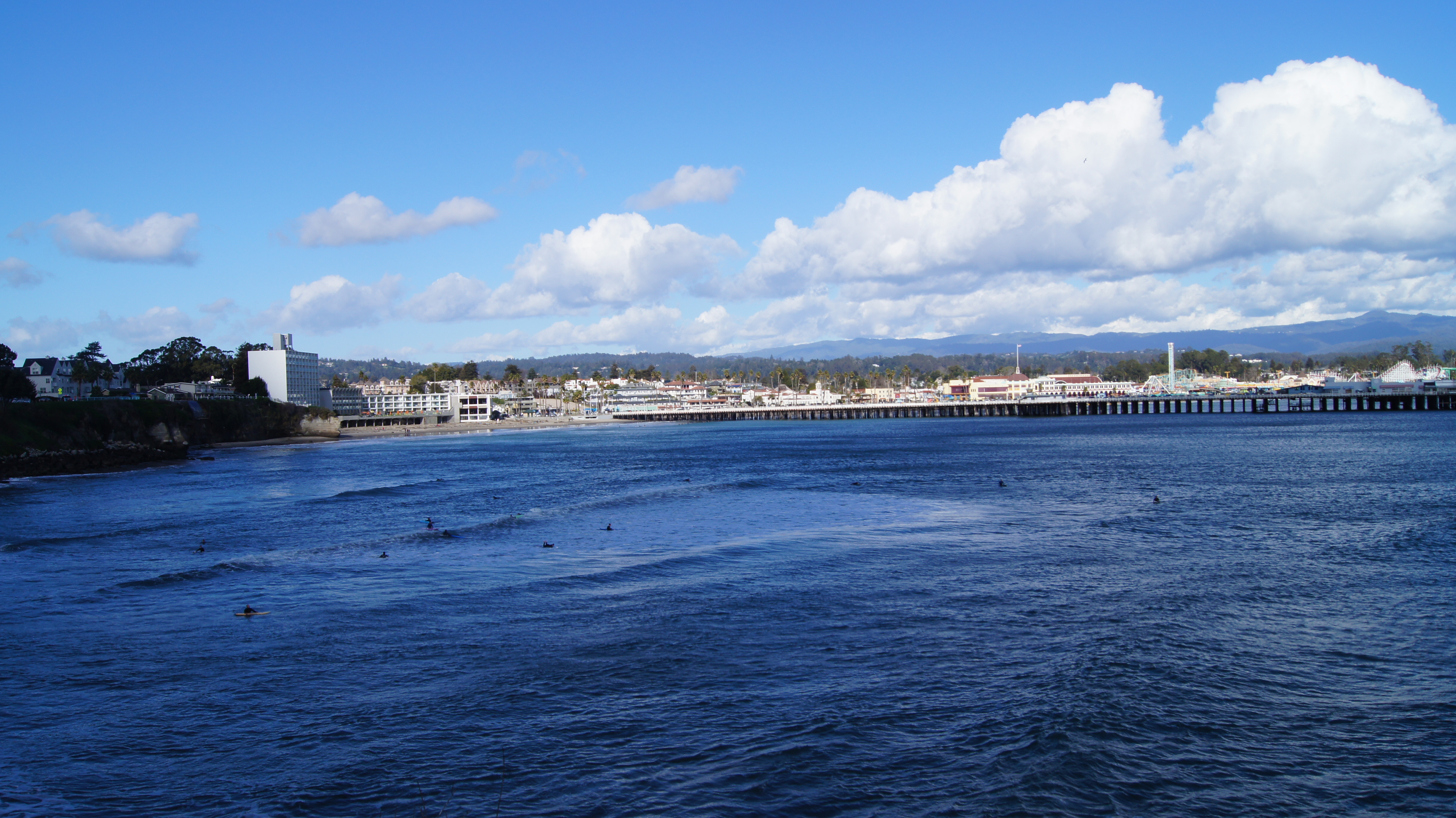 Viele Fahrradwege, die meisten geteert, und ein breiter Seitenstreifen am Highway machten das Fahren mit dem Rennrad zum Genuss. Die Berge hatte ich allerdings unterschätzt. Auf meinem Weg nach Santa Cruz kletterte ich auf bis zu 1.400 Meter, um dann wieder bis zum Meeresspiegel abzufahren. Google Maps gab höchstens